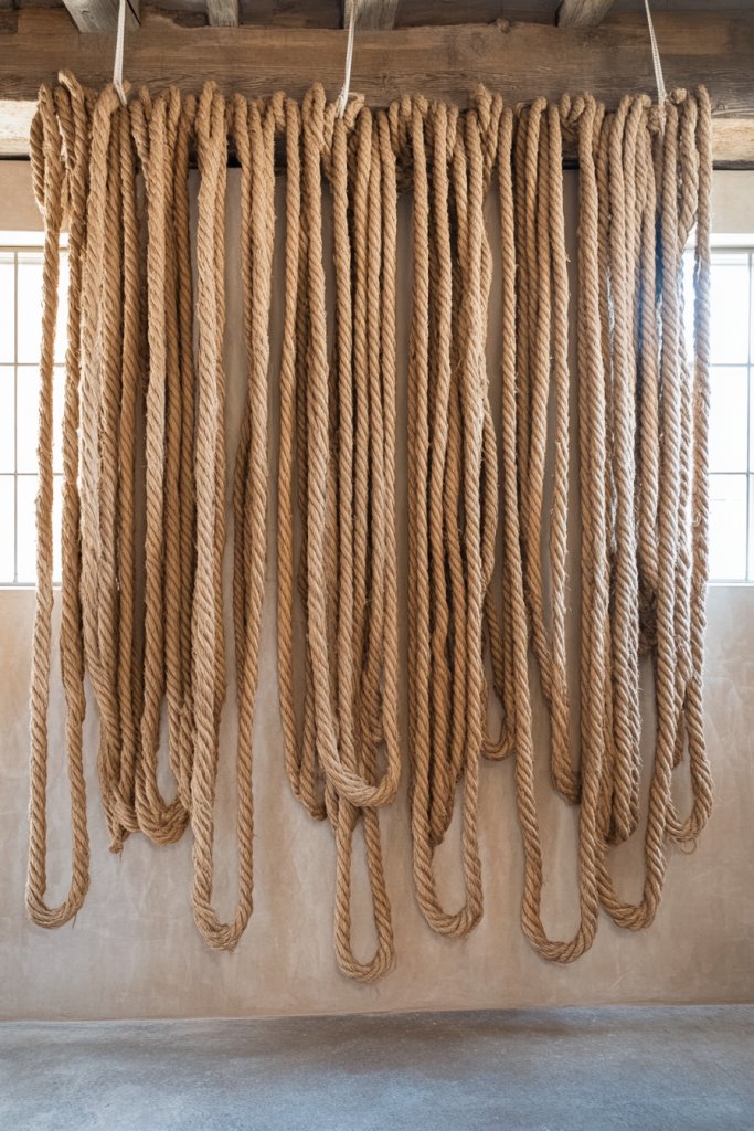 13. Rope or Fabric Wall Art Installations for Textural Privacy Depth
