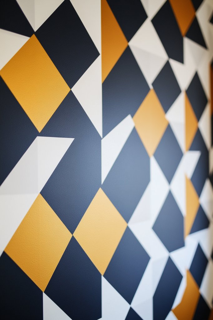 Add metallic or contrasting trims to emphasize the shapes. Incorporate textured paints or overlays for extra depth. Use lighting—like spotlights or LED strips—to highlight the color zones. You can also layer with wallpaper borders or decals that complement the color blocks for added visual interest.