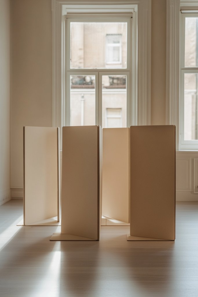 Attach a sturdy track to the ceiling, ensuring it’s rated for the weight of your fabric panels. Sew or attach fabric covers to lightweight frames or panels made from thin plywood or PVC. Hang the panels on the track, making sure they fold smoothly. Choose fabrics that are easy to clean and maintain, such as polyester blends or treated textiles. For soundproofing, layer thicker textiles or add batting between layers. Keep the hardware simple for easy operation.