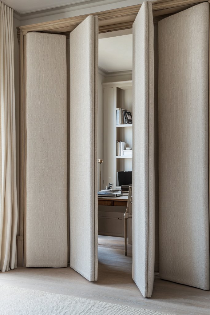 Need a flexible, soft barrier that adds a touch of comfort to your home office? Fabric-covered folding doors are perfect for creating privacy without feeling heavy or institutional. They’re lightweight, easy to operate, and can be customized to match your decor. If you’re tired of rigid, uninspired partitions, these panels might be your new best friend.