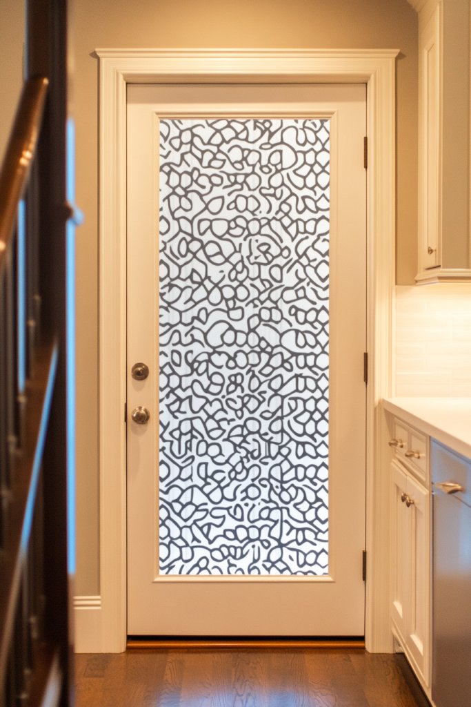 1. Frosted Glass Door Wraps for Modern Elegance