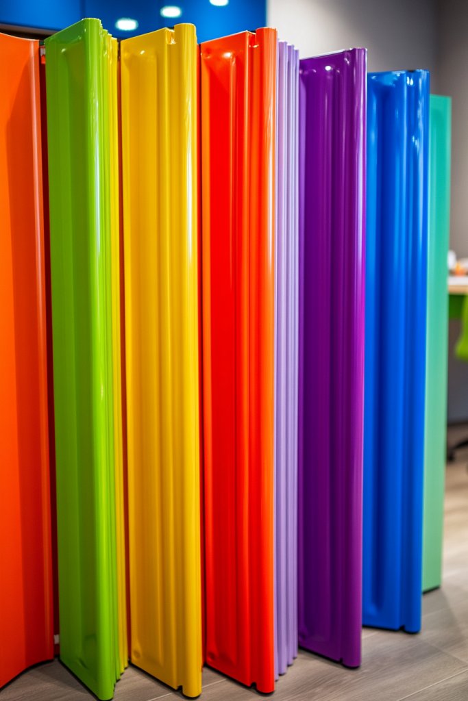 Vibrant accordion doors show off your personality and make your workspace lively. They demonstrate that privacy solutions can be playful, not dull. Embrace the versatility and colorfulness to create a space that energizes you every day. Ready to make a bold statement? Your colorful privacy door awaits.