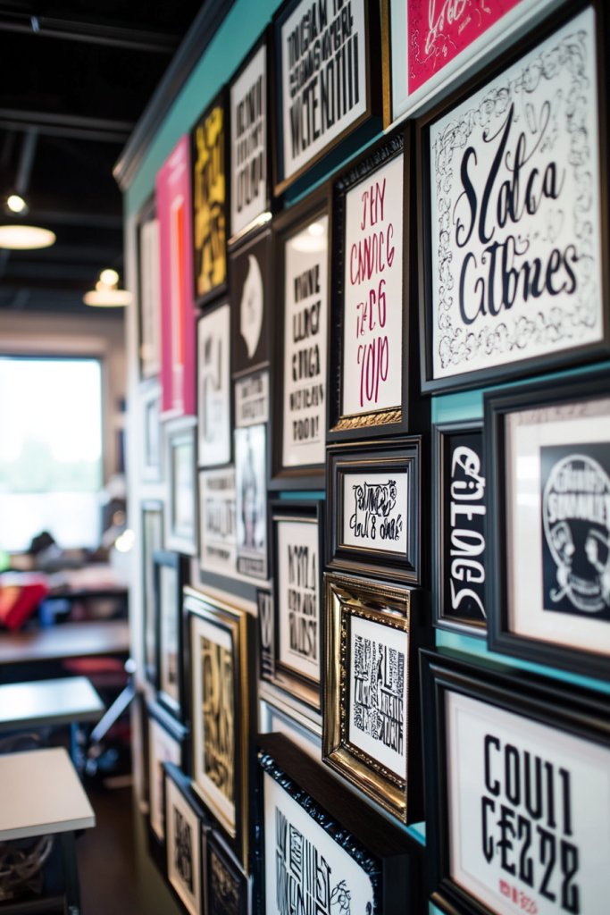 1. Eclectic Mix of Framed Quotes and Typography Art
