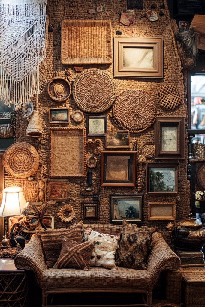 4. Boho-Inspired Gallery with Textured Wall Hangings and Frames