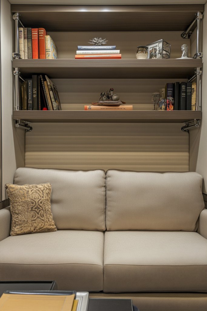 19. Dual-Purpose Sofa with Built-in Shelving for Space Efficiency