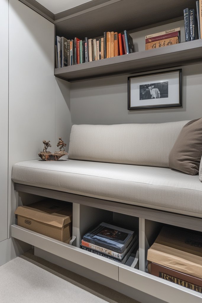 Personalize with cushions in your favorite colors or textures, and add seasonal throws or covers to refresh the space. Keep essentials organized in storage bins or behind cabinet doors. Use decorative accents that reflect your style—like a small sculpture or a patterned cushion—to make the space feel welcoming. This dual-purpose setup makes your home more functional and stylish.