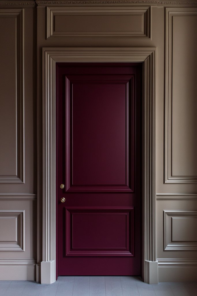 Add decorative molding or trim painted in a contrasting gold or cream for extra richness. Incorporate plush textiles or velvet curtains around the door for a regal vibe. Personalize with vintage hardware or ornate handles for a classic look. Small details like embossed patterns can elevate the overall aesthetic.