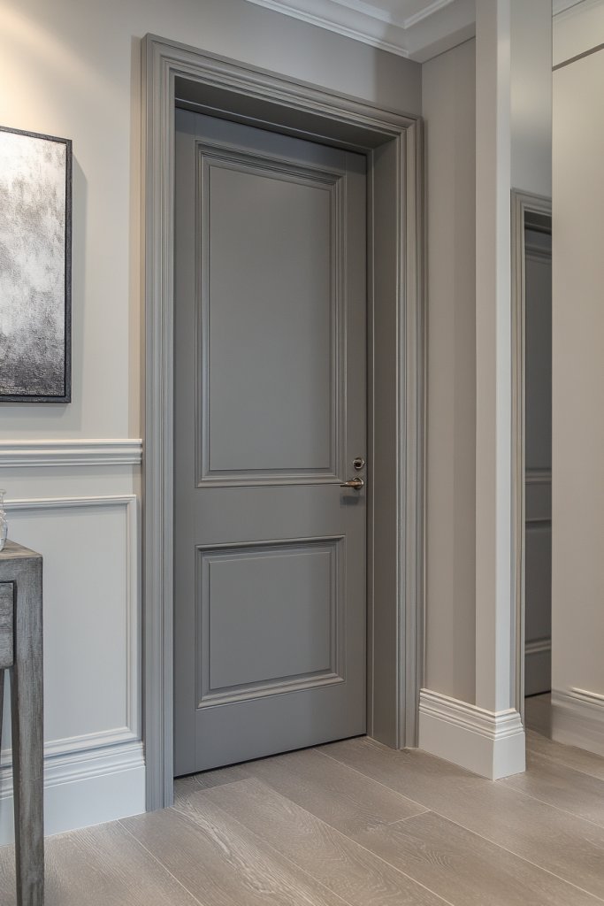Imagine a set of doors painted in a gentle, dove gray with a matte finish. They blend seamlessly with light-colored walls, creating a calm, cohesive space. The subtle hue emphasizes shadows and highlights, giving depth without overwhelming the eye. Textured details like paneling or beadboard add visual interest while maintaining understated elegance. It’s the quiet confidence of a well-chosen neutral.