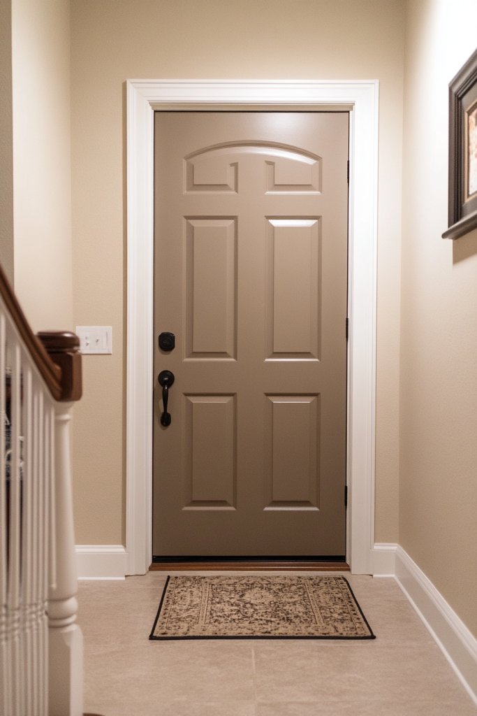 Add character with decorative molding painted in a contrasting shade, like white or darker taupe. Incorporate textured wall coverings or fabric panels around the door for added visual interest. Customize hardware with vintage or modern styles to suit your aesthetic. Layering textiles or subtle design details can elevate the cozy feel.