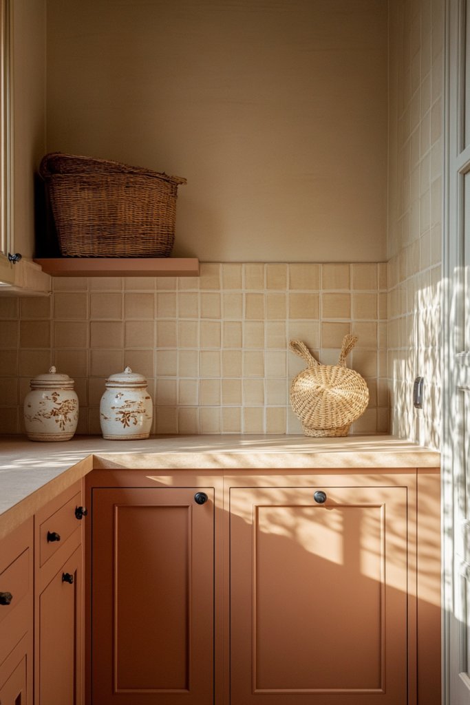 Switch between shades of beige, caramel, or muted greys to match your mood or season. For a cooler feel, incorporate soft greys with warm undertones; for a warmer vibe, lean into sandy or terracotta hues. Large open spaces benefit from subtle tonal variations to add visual interest without disrupting the calm. Compact kitchens can use darker accents to create a grounded, cozy feel.