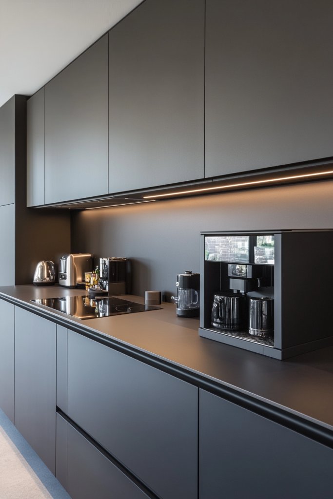 Cluttered countertops with bulky appliances can ruin a minimalist vibe faster than you can say ‘overwhelmed.’ Concealing appliances behind panel-integrated surfaces keeps your kitchen looking sleek and unified. It’s a smart way to maintain visual flow and reduce visual noise.