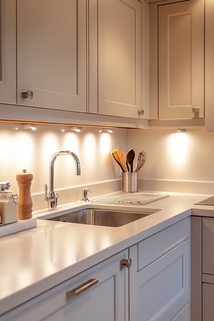Personalize with subtle accents like textured textiles, unique door handles, or a statement backsplash. Use lighting strategically to highlight architectural details rather than clutter. Incorporate a few statement pieces—like a sculptural light fixture or a textured countertop—without overwhelming the space. Keep accessories minimal but meaningful.