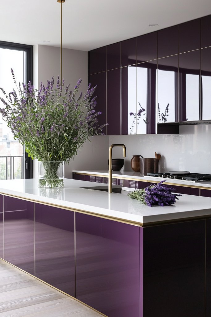 Imagine cabinets painted in soft lavender, harmonizing beautifully with warm whites or muted grays. When paired with natural wood accents, the effect can be both modern and timeless, bringing a touch of sophistication to your culinary haven.