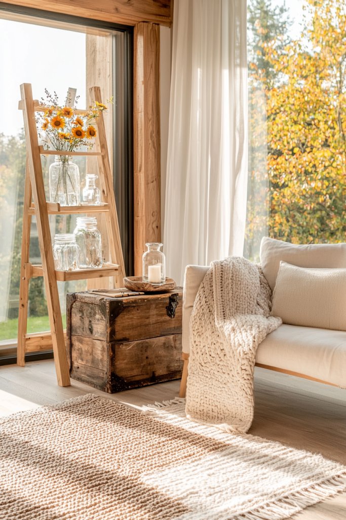 These materials not only tell a story but also bring warmth and authenticity to your cabin. You can also repurpose vintage items—an old ladder can become a quirky bookshelf, while glass jars can serve as charming candle holders.