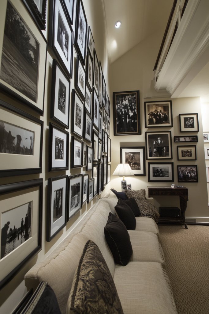 15. Vertical Gallery Wall to Maximize Narrow Spaces