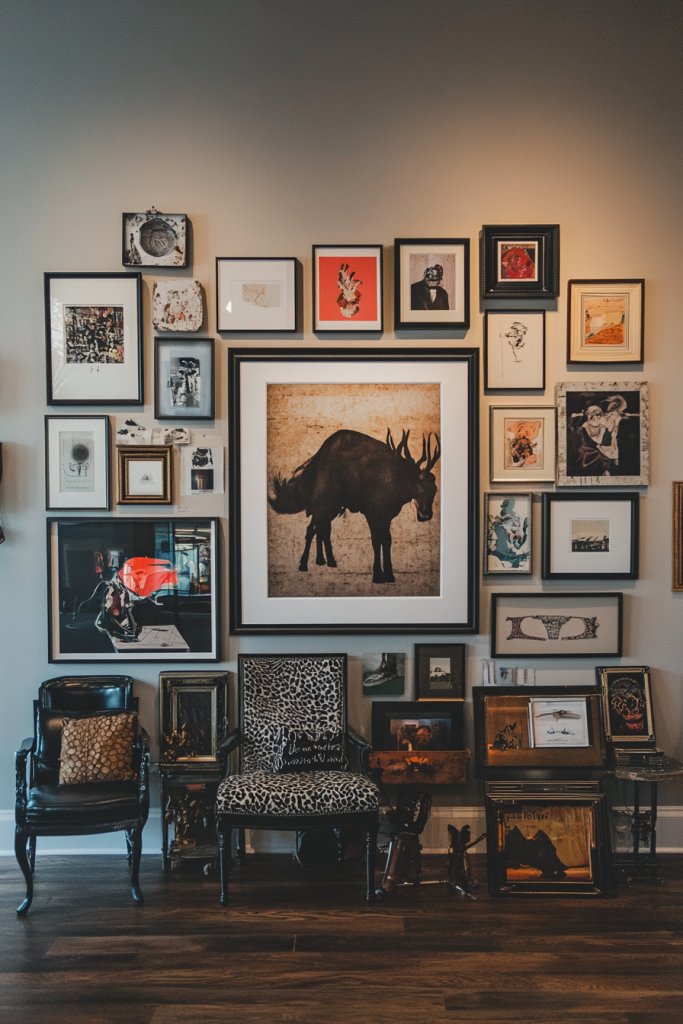 An asymmetrical gallery exudes personality and confidence—proof that perfect symmetry isn’t always necessary. It encourages you to experiment and celebrate your eclectic style. Once you see how lively and inviting your wall becomes, you’ll be inspired to embrace more unconventional decor ideas.
