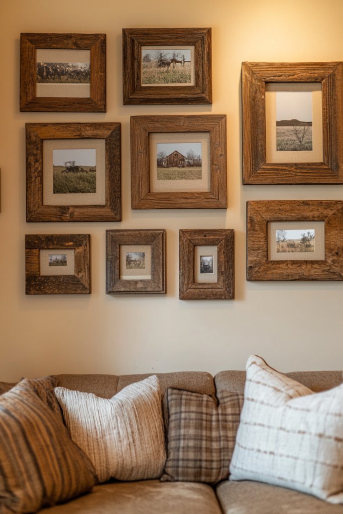 9. Rustic Wooden Frame Gallery for Cozy Charm
