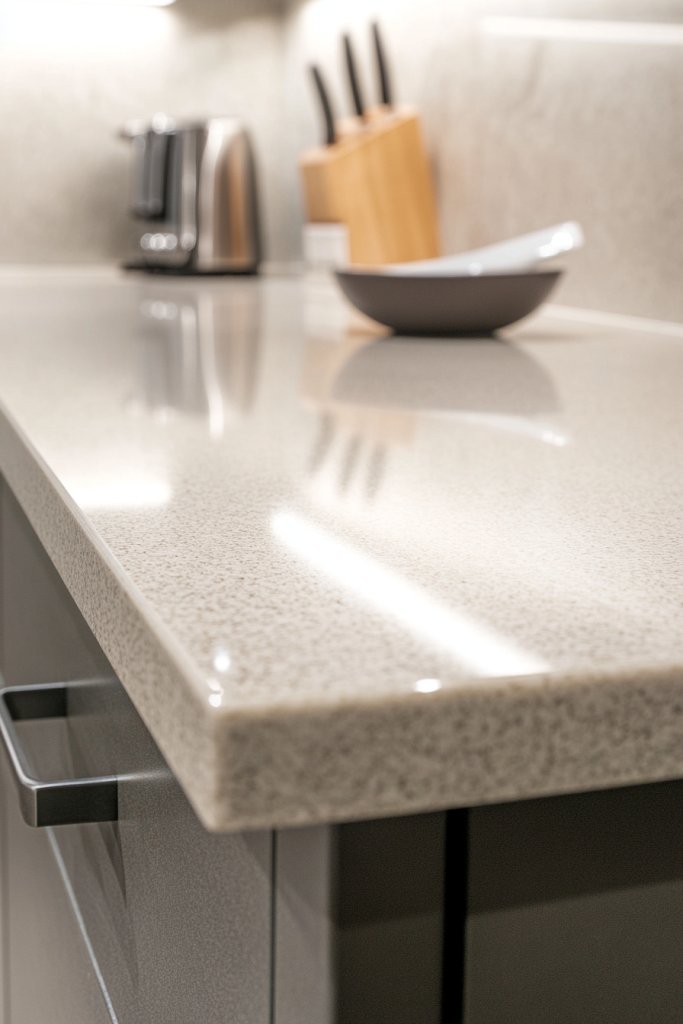 12. Choose Quartz or Solid Surface Countertops with Clean, Straight Edges