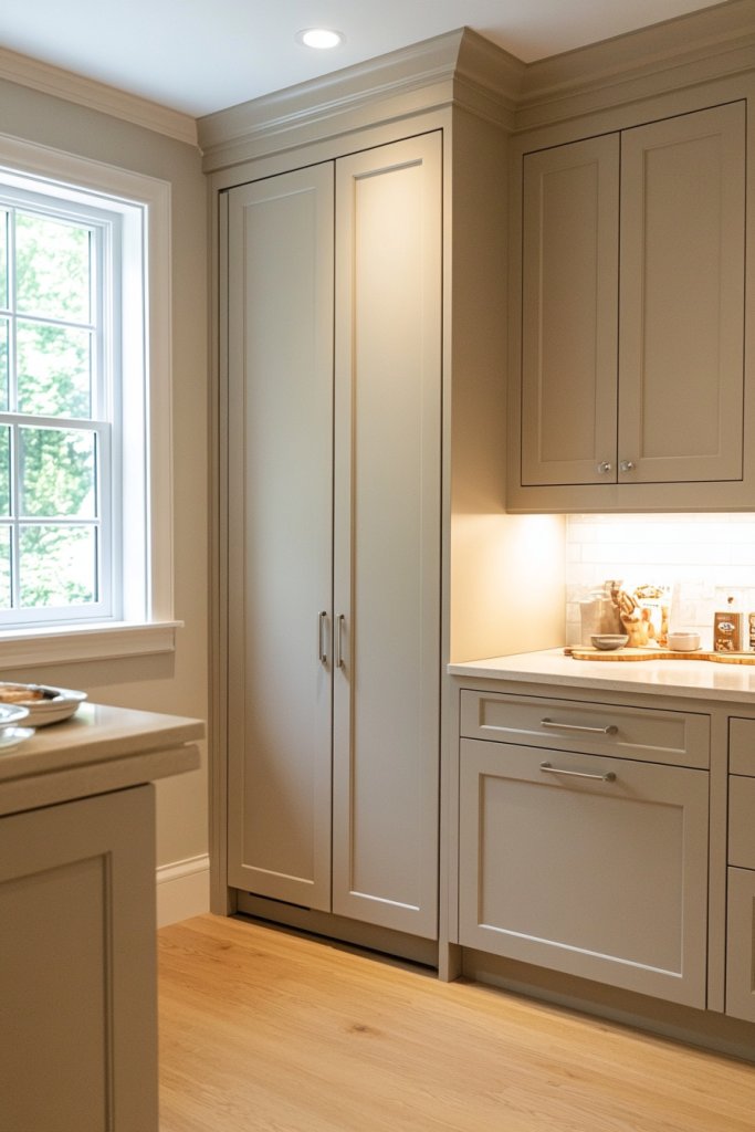 Choose panels in the same material and color as your cabinets for a uniform look, or opt for contrasting finishes for visual interest. Incorporate smart appliances that can be integrated behind panels for added tech-savviness. Use hidden handles or push-to-open mechanisms to maintain the clean exterior. This approach adapts well to small spaces and open-concept kitchens.