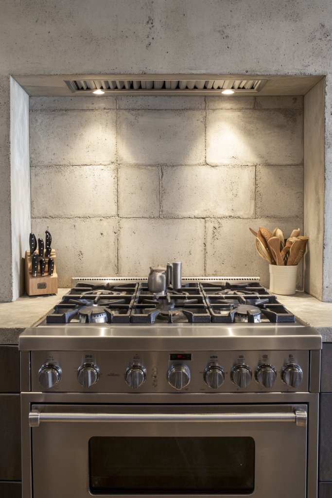 17. Use Textured Tile or Concrete Finishes for Durable, Stylish Backsplashes