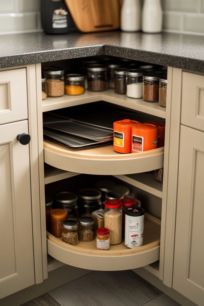 21. Implement Smart Storage Solutions with Pull-Out Cabinets and Lazy Susans