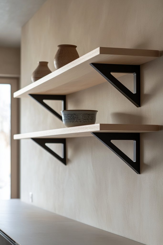3. Incorporate Open Shelving with Geometric Brackets for Stylish Storage