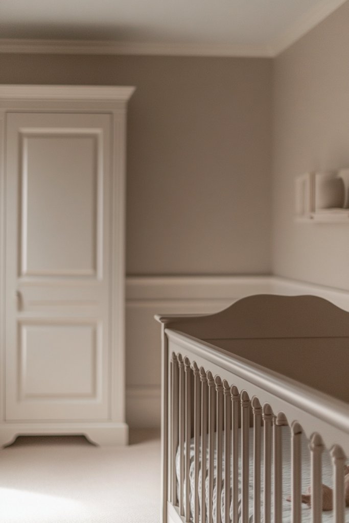 Imagine soft, gentle walls painted in shades like warm beige, subtle taupe, or cool off-white. The surface absorbs ambient light, creating a serene glow that makes the room feel spacious yet cozy. The muted tones act as a perfect backdrop for simple, functional furniture—think unadorned wooden cribs and sleek storage units. This minimal use of color lets textures and natural materials stand out without visual clutter.