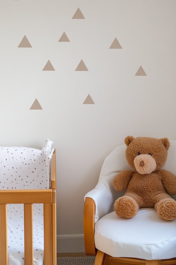 Imagine delicate, neutral-toned geometric shapes—triangles, circles, or lines—applied directly onto a blank wall. These decals create a subtle visual rhythm, adding depth and dimension without overwhelming. When lit with soft ambient light, their shadows cast interesting patterns, enriching the room’s visual texture. The decals are simple enough to complement any nursery decor, from Scandinavian to contemporary styles.