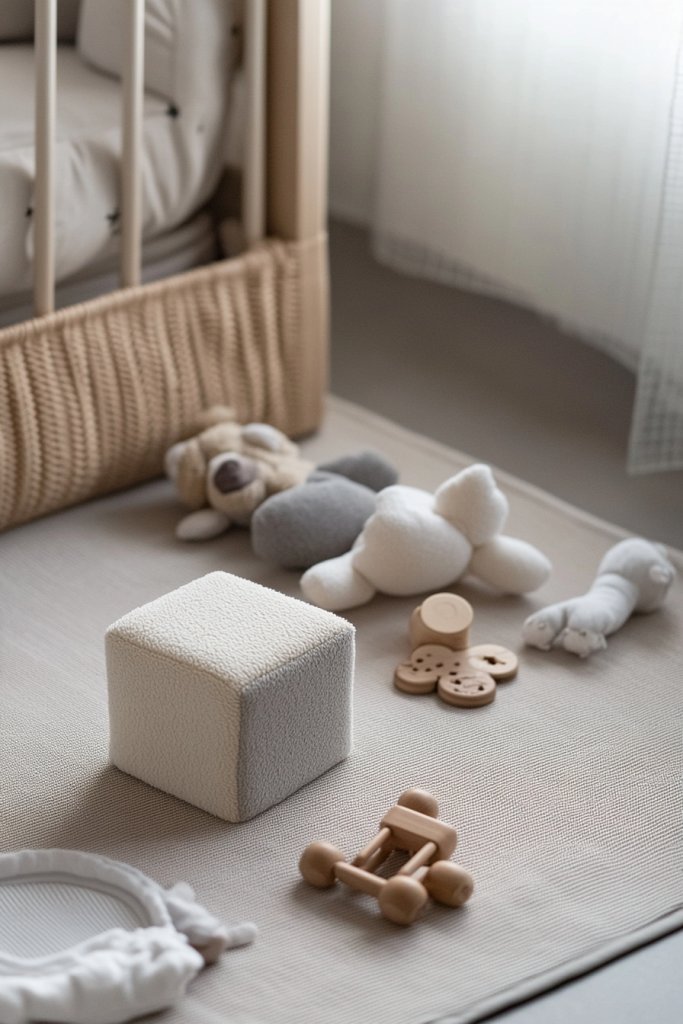 15. Minimalist Play Area with Soft, Neutral Toys