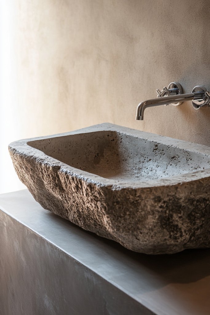 13. Natural Stone or Concrete Sinks for a Rustic Elegance