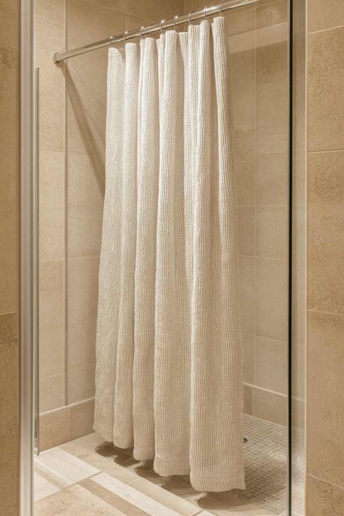 7. Neutral-Toned Textured Shower Curtains or Doors