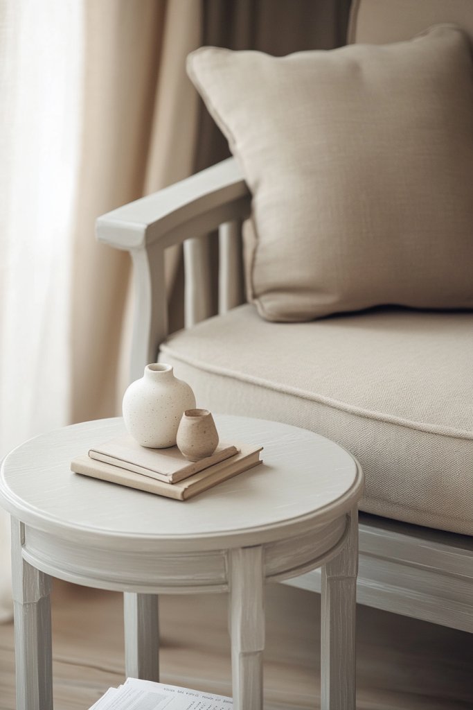 Start by selecting furniture in soft neutral shades, either painted or stained. Use chalk paint or special furniture paint for DIY projects, applying multiple thin coats for an even finish. Lightly sand distressed areas for authenticity. Seal with a clear matte or satin finish to protect from wear. Incorporate these pieces into your existing decor for a cohesive look.