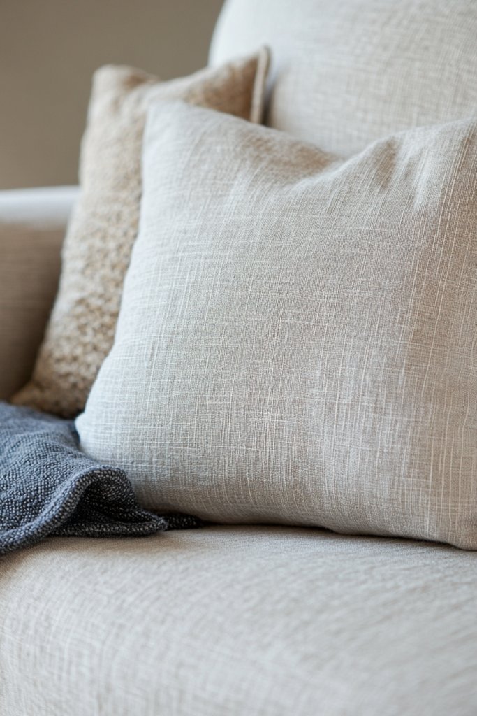 Mix different textures and sizes for a dynamic look—think a large lumbar pillow paired with smaller square accents. Use neutral tones like taupe, cream, or soft gray to keep the coastal vibe understated. Seasonal updates might include adding a few with embroidered starfish or abstract ocean motifs. Incorporate textured throws or blankets to further enhance the layered, relaxed feel.