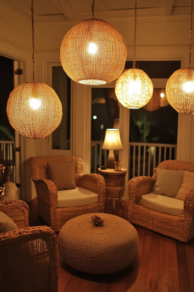 Looking to add warm, textured lighting to your space? Pendant lights made from jute, rattan, or woven fibers bring in that coastal, organic feel. They serve as both functional illumination and decorative statement pieces. Plus, they create an inviting atmosphere perfect for relaxing or entertaining.