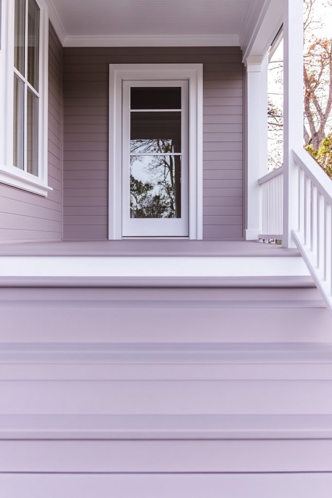 Lavender’s calm, graceful aura elevates your home’s exterior to a new level of sophistication. It’s a versatile color that pairs beautifully with many styles, from traditional to modern. Once you see how soothing and stylish it is, you’ll be inspired to explore more subtle, elegant palettes. Your porch will radiate tranquil charm.