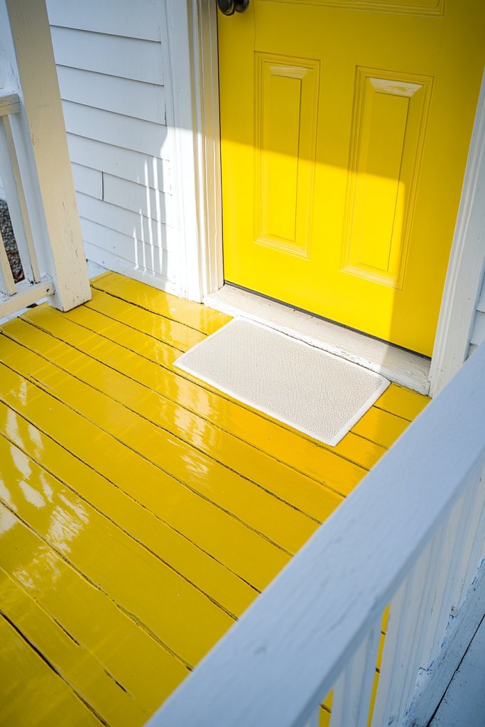Bright lemon yellow makes your home feel warm, happy, and welcoming. It’s a bold choice that radiates positivity and fun. Seeing your porch burst with color will inspire you to explore more vibrant palettes. Your home will become a cheerful beacon in the neighborhood.
