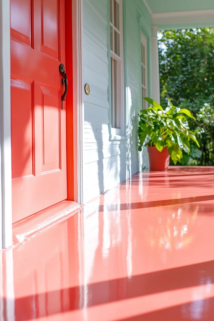 Want your porch to shout ‘welcome!’ before anyone even steps inside? Bright coral is the energetic pop of color that instantly lifts spirits and makes a bold statement. It’s perfect for homeowners craving a lively, joyful entrance that radiates positivity. Are you ready to turn heads and spread good vibes?