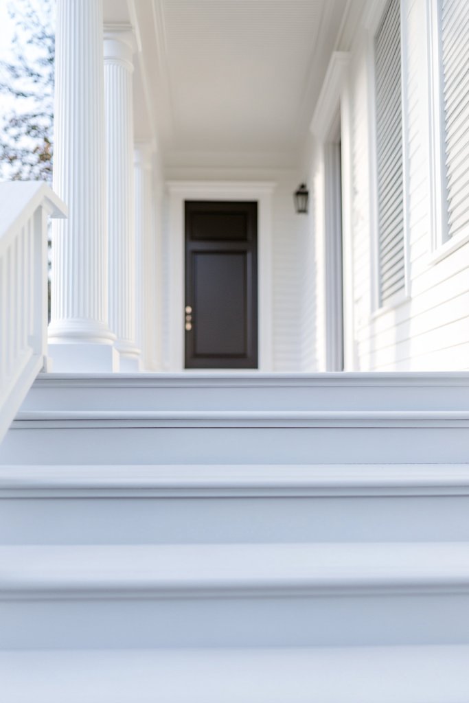 White exudes confidence and a sense of freshness that never goes out of style. It’s a versatile backdrop that allows your home’s architecture and details to shine. Once you embrace this minimalist approach, you’ll be inspired to keep things simple yet impactful. Your porch becomes a statement of modern elegance that’s easy to maintain and endlessly adaptable.