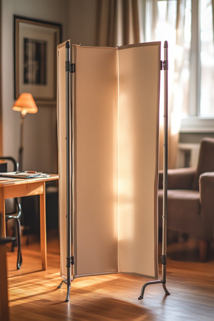 Choose from lightweight fabric panels, wooden screens, or even collapsible accordion dividers. Use colorful or patterned fabrics to add personality or neutral tones for a minimalist look. For seasonal changes, swap out fabrics or covers. They work well in bedrooms, studios, or shared living spaces, giving you control over your environment.