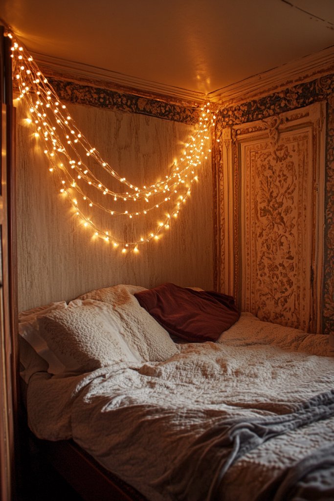 13. Removable Ceiling or Wall String Lights for Cozy Ambiance