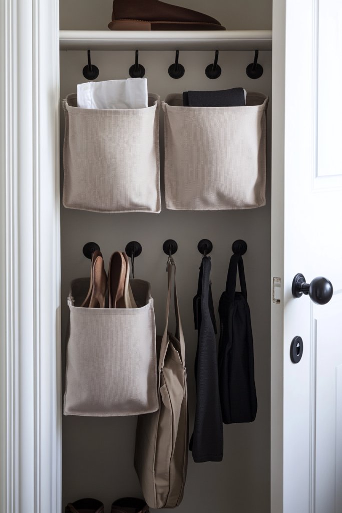 Imagine a series of hanging pockets or hooks behind your closet door, holding shoes, bags, or small accessories neatly in place. Alternatively, a pegboard with hooks draped over the door can hold larger items or tools. These solutions turn underused space into an organized haven, without drilling or permanent fixtures. The sleek design blends into your decor, maintaining a clean look.
