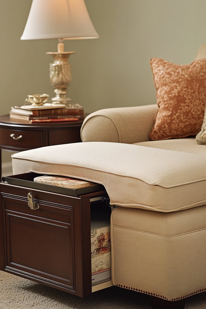 Visualize an elegant ottoman with a hinged top revealing a storage compartment for blankets or shoes. Or a bed frame with drawers underneath, perfect for stashing seasonal clothing or extra linens. These pieces look like regular furniture but hide clever storage solutions inside. They add a sleek, modern touch while keeping clutter out of sight.