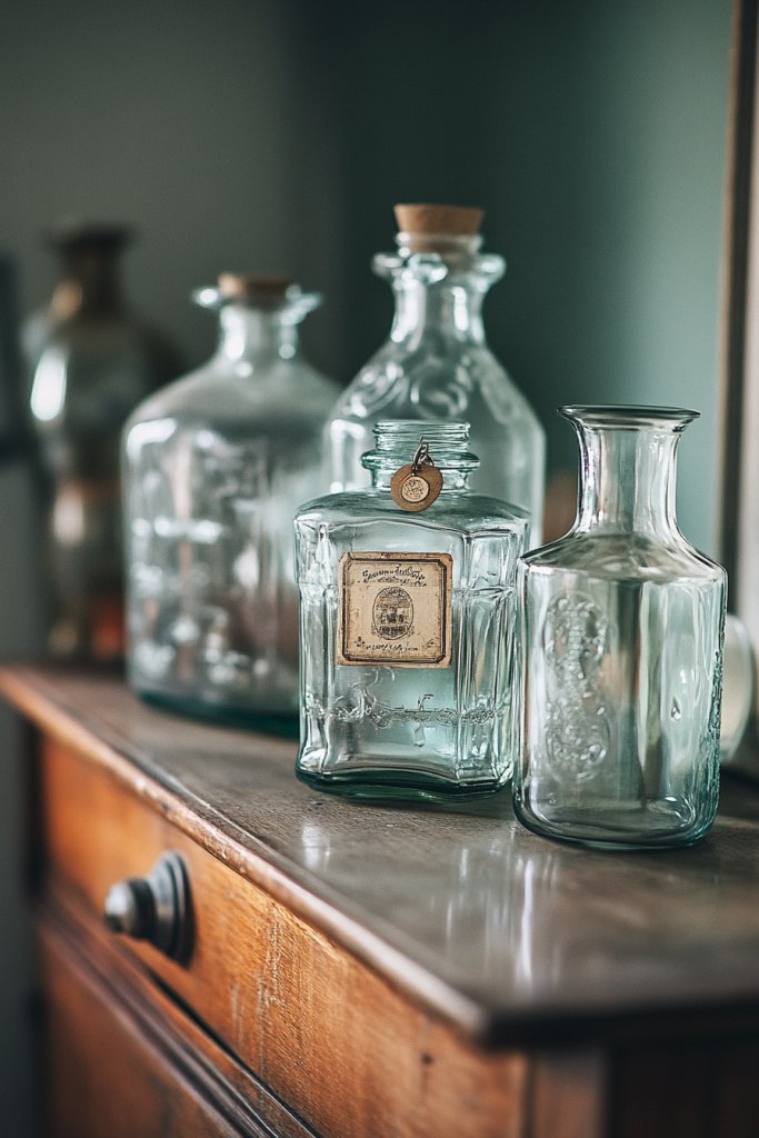 14. Clustered Glass Jars and Bottles for a Vintage Flair
