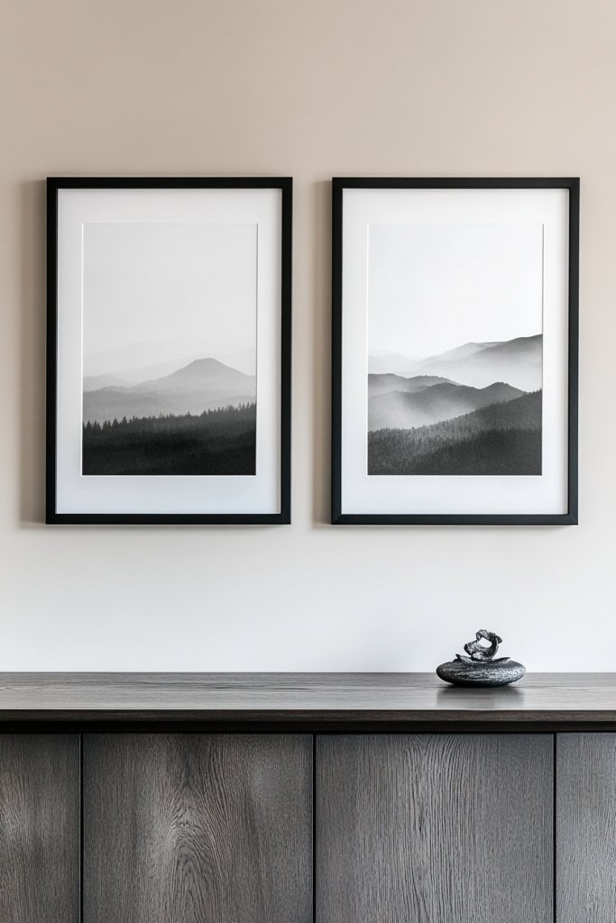 Monochrome art prints provide a sleek, timeless backdrop that feels both modern and curated. They’re an effortless way to add sophistication and a personal touch to your sideboard.
