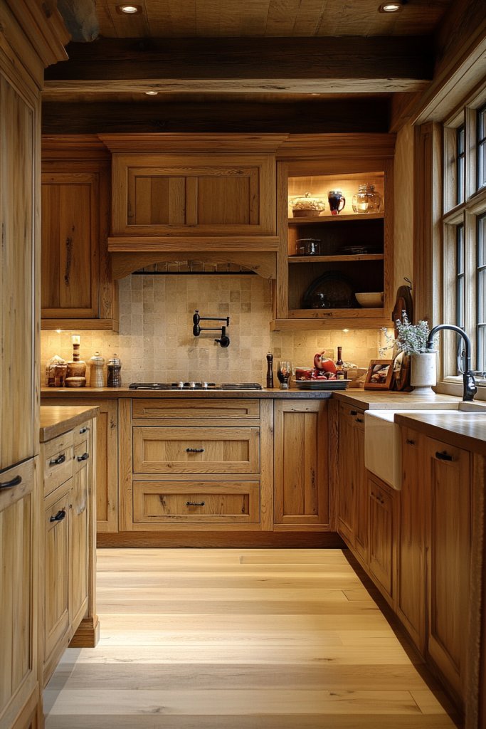 1. Embrace Warm Wood Cabinets for a Cozy, Natural Look