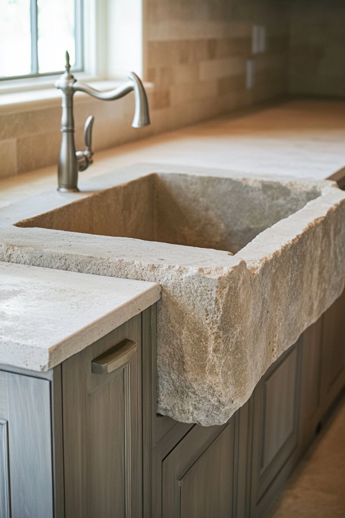 15. Add Stone or Concrete Sinks for a Modern, Natural Touch