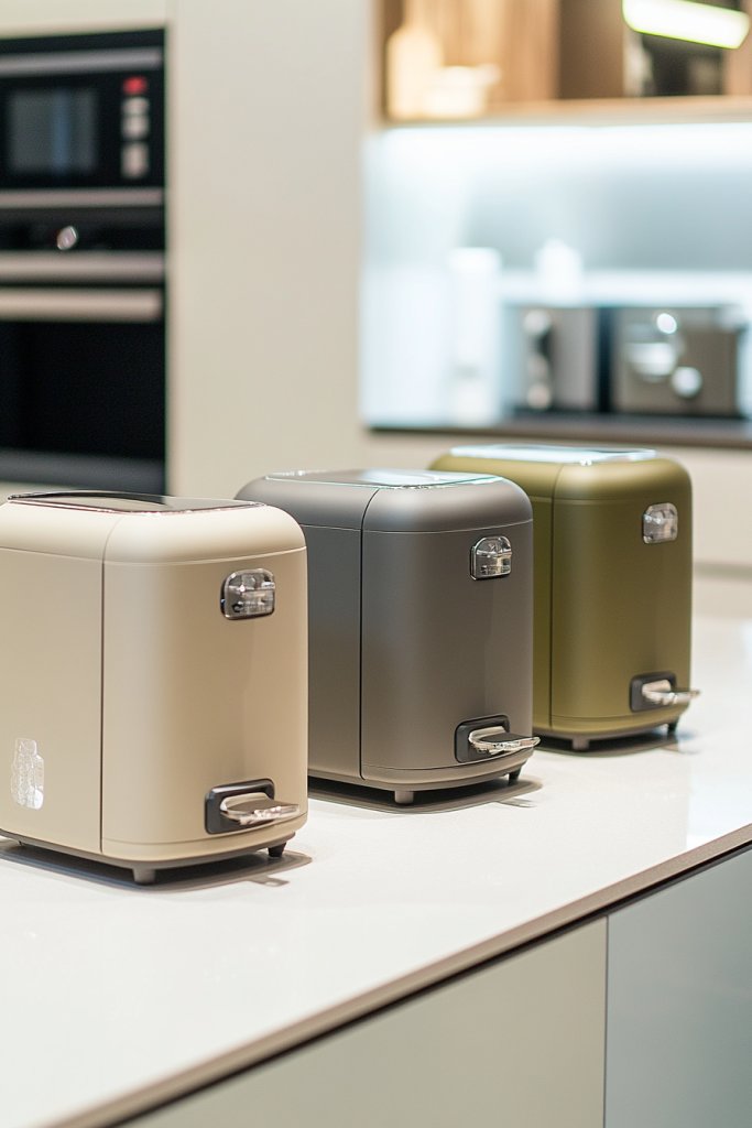 Picture matte black or muted earth-toned appliances on a background of textured wood and soft linen textiles. The matte finish absorbs light, reducing glare and creating a calming environment. The subdued palette emphasizes natural textures and materials, giving your kitchen a sophisticated yet understated feel. The accessories—utensil holders, spice racks, and small gadgets—match in tone, completing a cohesive aesthetic.