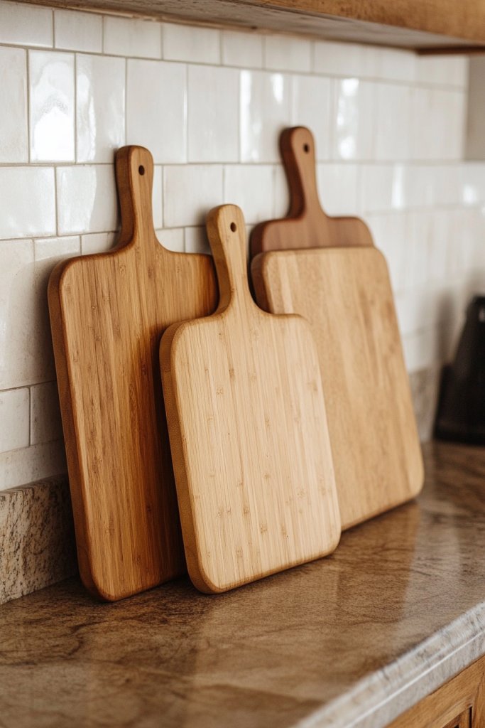 19. Integrate Functional Wooden or Bamboo Cutting Boards as Decor