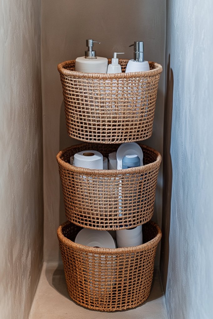 Tiered baskets turn chaos into order, proving that simple solutions can make a big difference. They encourage organization and make your bathroom feel less cluttered and more inviting.