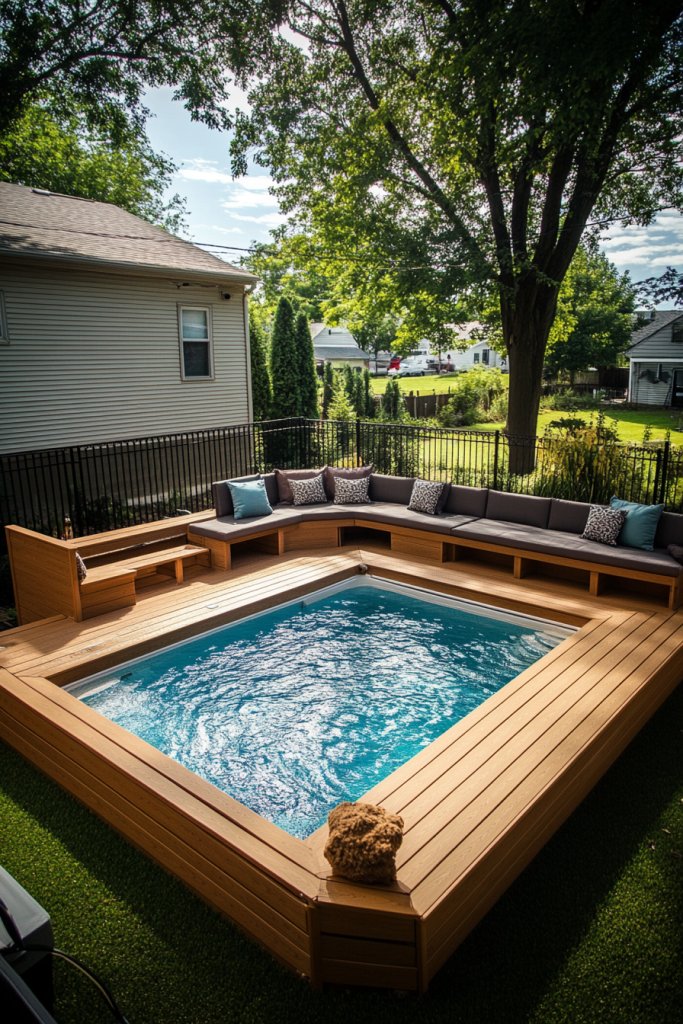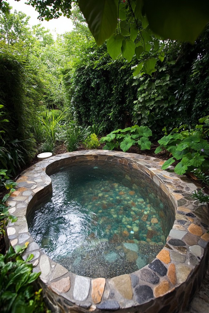 A mosaic-tiled mini pool combines art and function, proving that small spaces can be full of personality. It’s perfect for creating a cheerful, inviting vibe that sparks joy. With minimal space and maximum visual impact, it’s a smart choice for stylish, compact outdoor living. Turn your yard into a colorful retreat that’s uniquely yours—fun, functional, and fabulous!